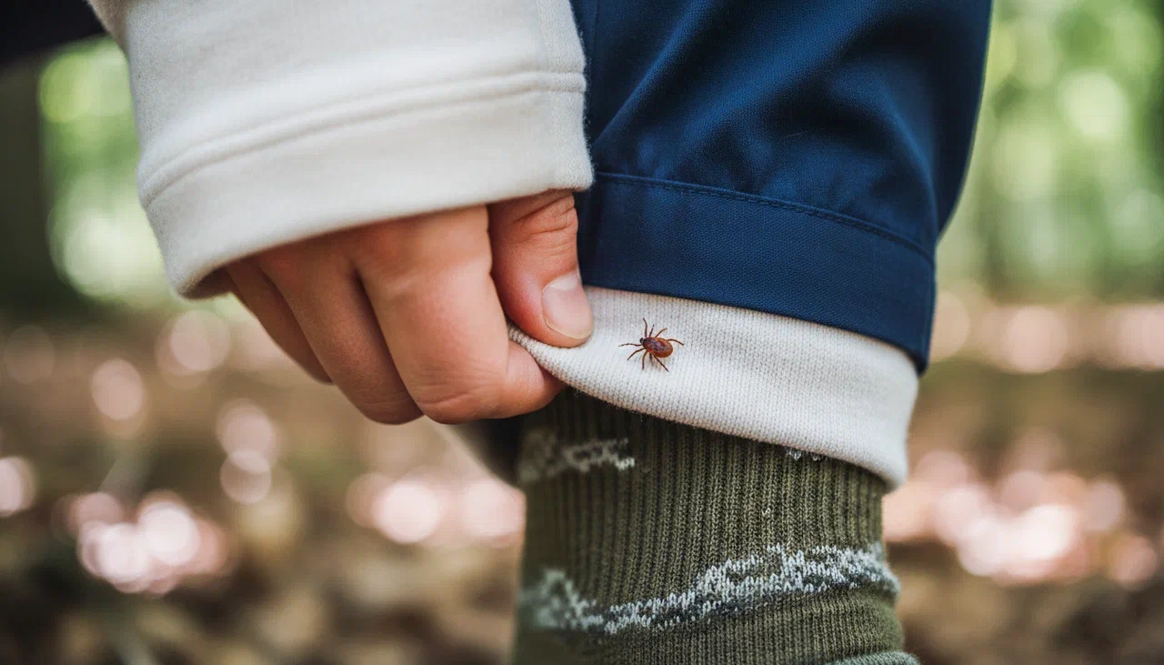 Вопреки распространённому мнению, клещи не прыгают с деревьев, а поджидают в траве и в листве низких кустарников, поэтому основное внимание нужно уделить защите ног.