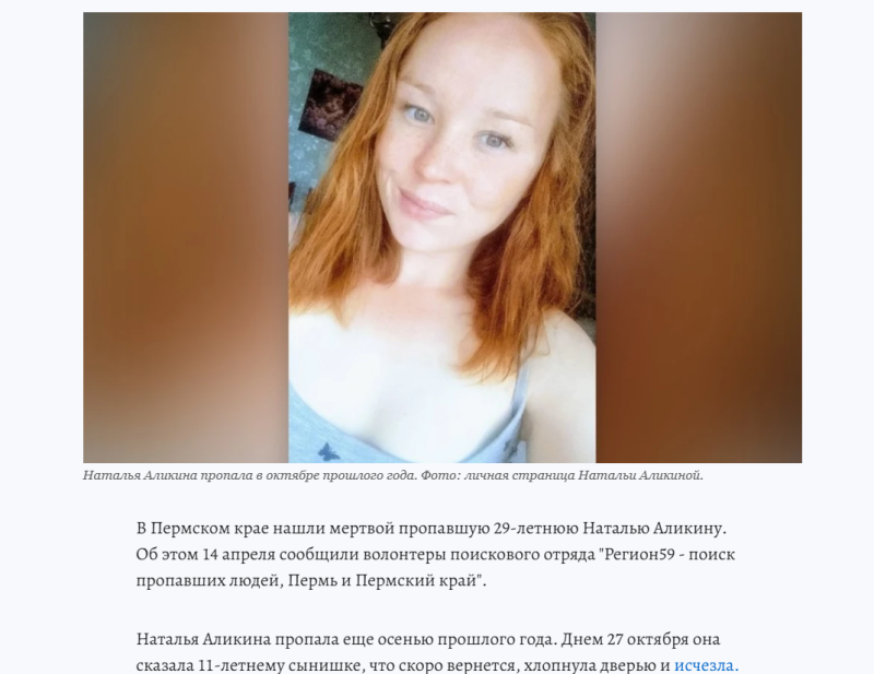 Родственники Натальи потом сообщили журналистам, что это был ложный след. Свидетельница, по их словам, перепутала пропавшую женщину с похожей на неё девушкой.