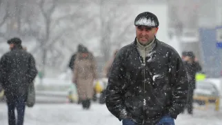 В столице резко ухудшилась погода — снегопад сопровождается порывистым ветром.